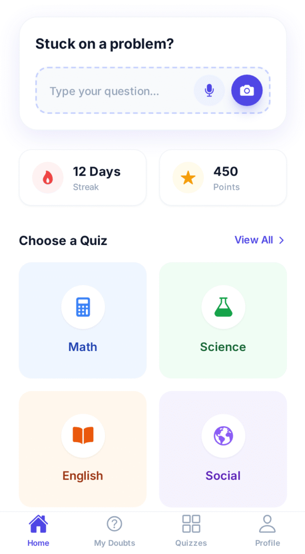 Technology can help solve this! Artificial Intelligence (AI) can become a friendly teacher’s assistant and a personal guide for students. AI Buddy is a digital learning companion that helps students: Clear doubts instantly and assit you in Smart study. Answers doubts instantly. Gives easy quizzes and Helps every child learn better. Are you ready.