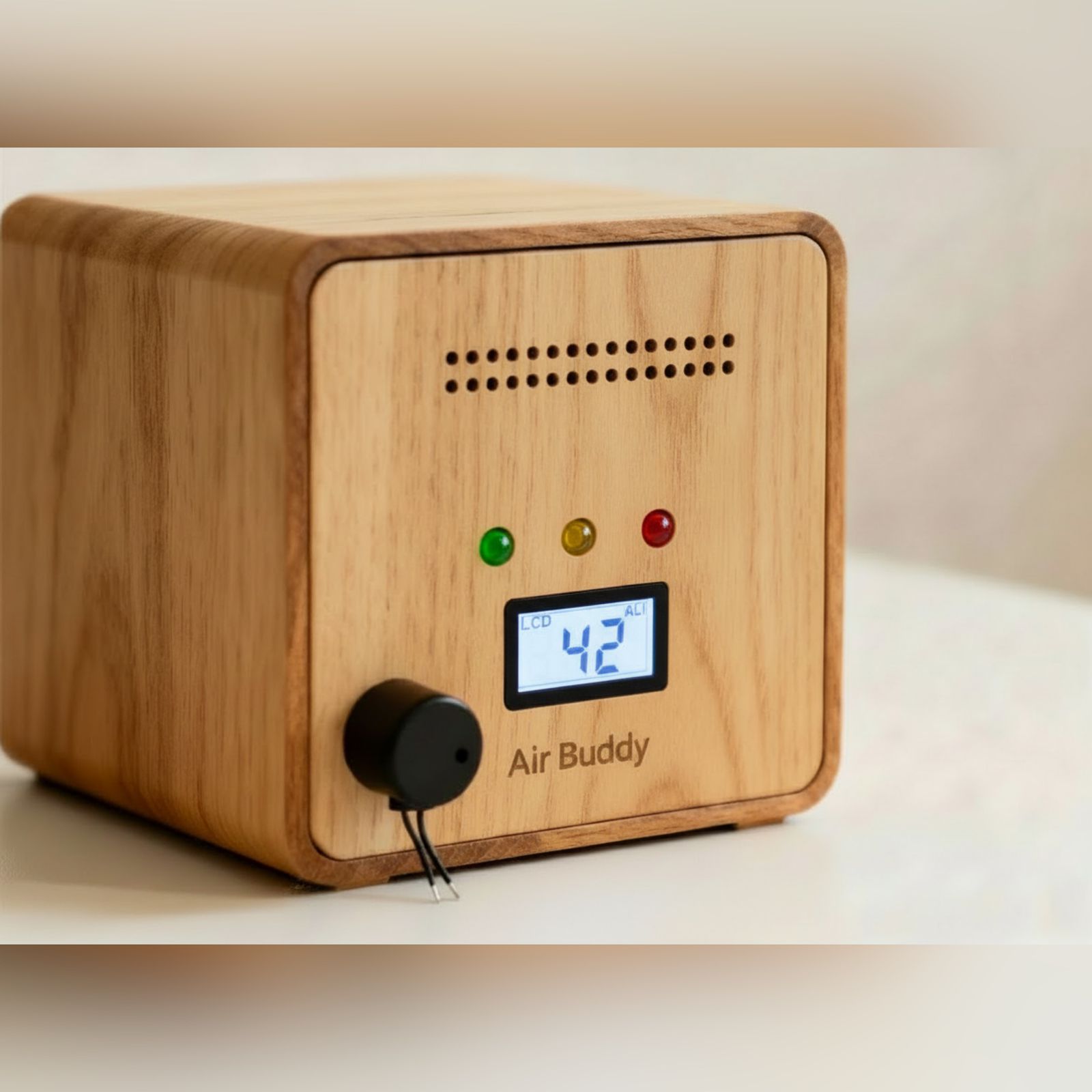 Air Buddy tackles poor classroom air quality from CO₂ spikes above 1000 ppm in 30-45 minutes (reducing cognition by 50%), dust, pollution, and ventilation gaps, which cause student fatigue, headaches, and respiratory issues among 25-30 pupils. This affordable, student-built Arduino device deploys professional-grade sensors (like MQ-135) in a compact desk format for real-time monitoring, delivering instant color-coded LEDs (green-good, red-hazardous) to prompt actions like window-opening. Its simple-yet-sophisticated design sparks “aha!” learning moments, making it an ideal entrepreneurial venture for scalable STEM solutions in schools worldwide.