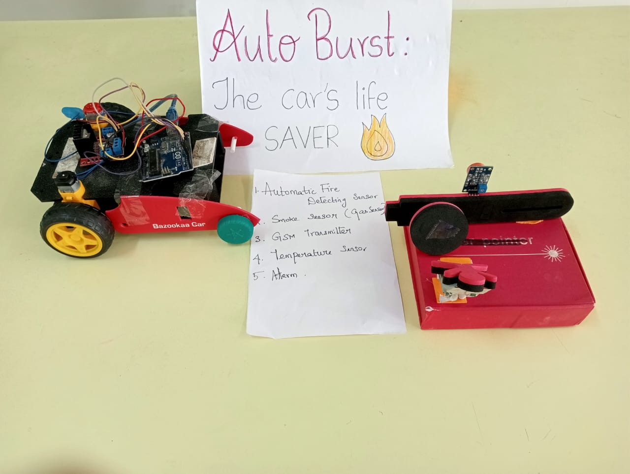 Every year thousands of car fire occur. So we thought of creating a self activating fire extinguisher that works automatically when danger is detected. We have attached a pouch filled with carbon dioxide powder near the engine. When the temperature of the engine raises beyond the safe level, the pouch burst due to heat. As soon as it bursts, it releases the extinguishing powder which suppresses the flames immediately.