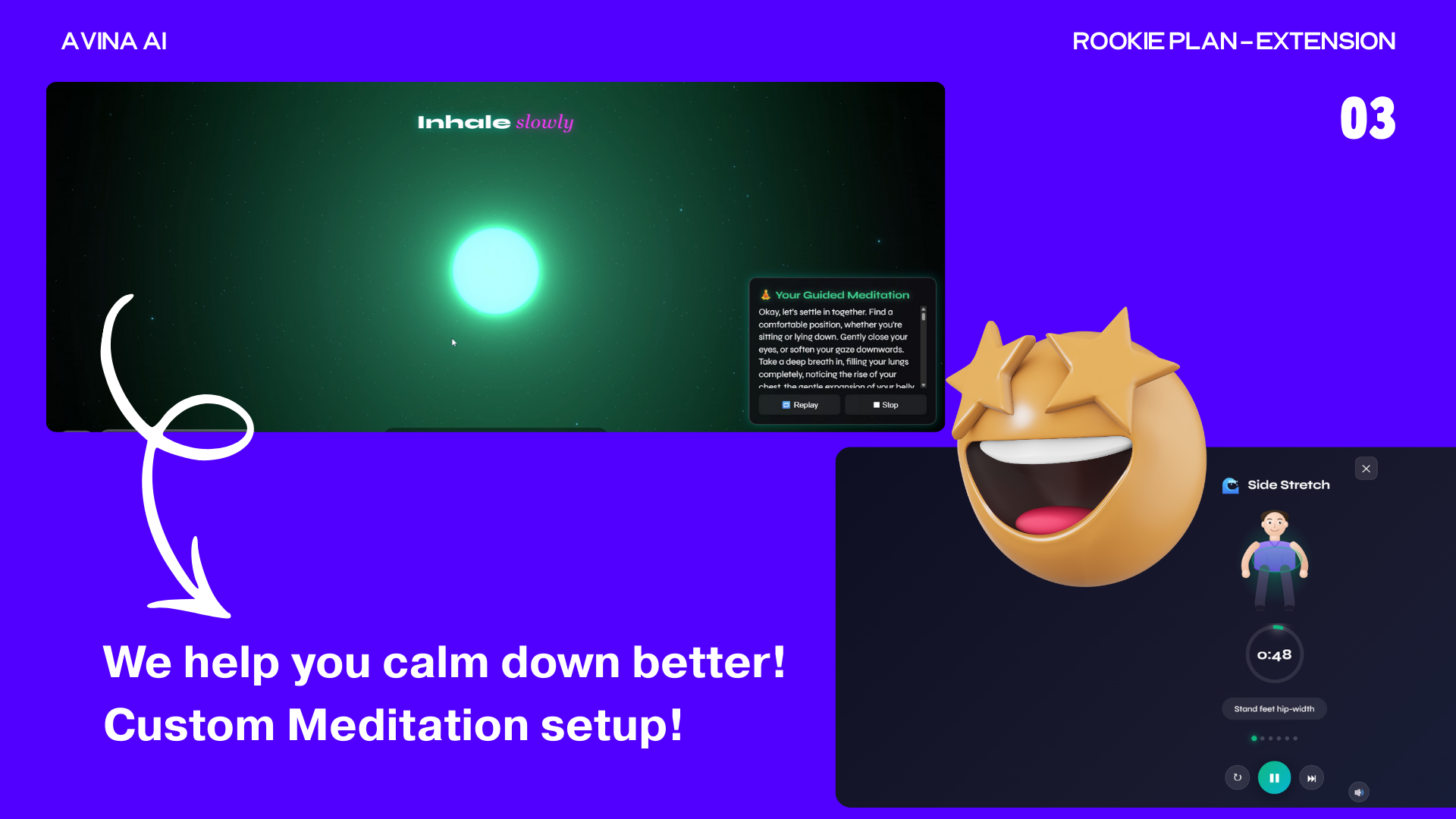 Avina Rookie became that: a playful, gentle companion that blends mood tracking, journaling, breathing practices, focus analytics, and 50+ behavioral signals into one calm experience.