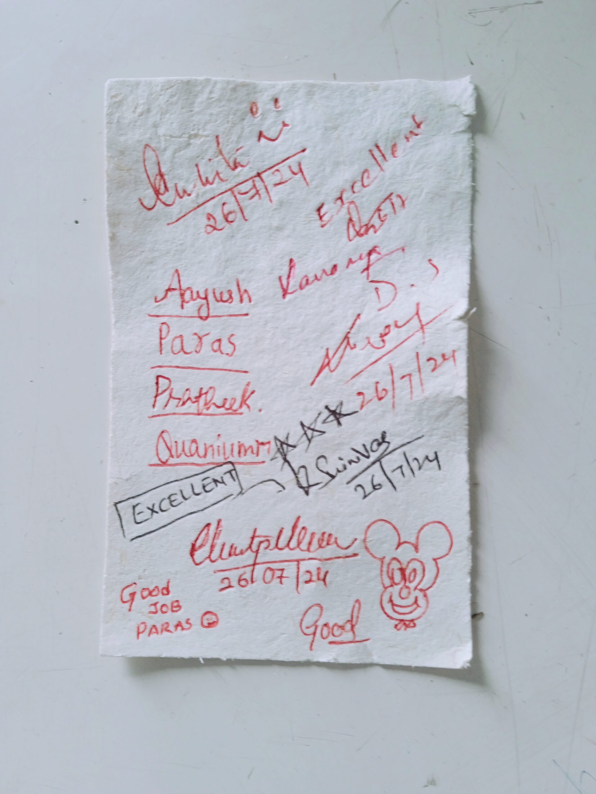 This is an eco-friendly and sustainable alternative for the traditional paper, which is made up of lemon grass. Which has properties like anti-bacterial and also it prevents mosquitos coming nearby which can turn the paper thatwe are making into a reusable paper making it into a curtains.