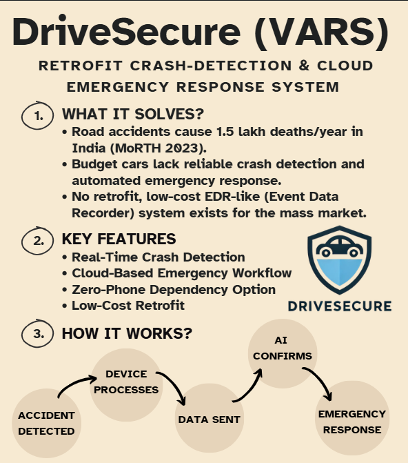 DriveSecure has earned multiple state and national-level awards, and the concept has been appreciated by Mercedes-Benz Silver Arrows for its engineering vision and real-world applicability.