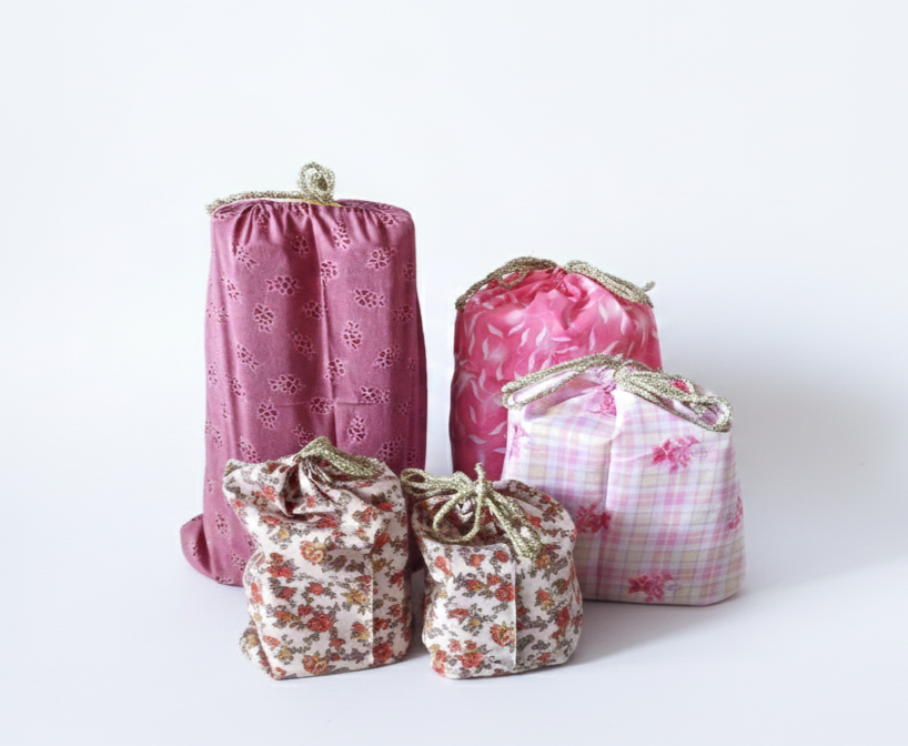 - An eco-friendly cloth gift wrap pack is a perfect way to add colour and care to your celebrations. Each pack includes five beautifully designed wraps in different vibrant colours, made from soft, reusable fabric that reduces waste and protects the environment. Simply insert your gift in these wraps, pull draw string and tie knot to end your packaging. These cloth wraps are easy to fold, tie, and use for any occasion, making your gifts look elegant while supporting a sustainable lifestyle.