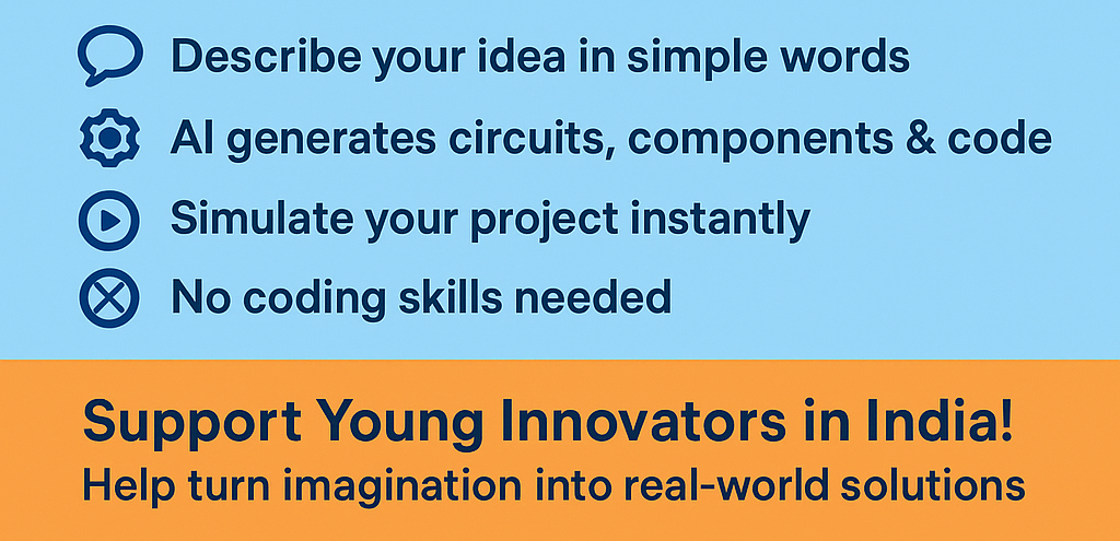 InnoCraft AI helps students turn ideas into real projects without needing any programming skills. Your support will help bring this tool to more young innovators across India.