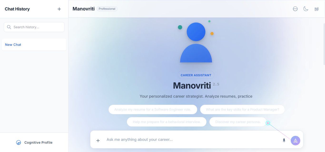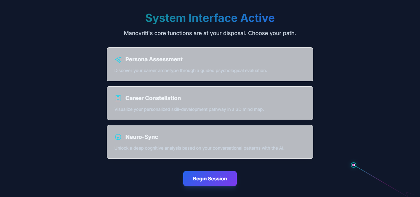 Manovriti is a modern AI-based career counseling platform designed to help students make smarter and more confident career decisions. The app uses artificial intelligence to analyze a student’s interests, talents, academic performance, and preferences to suggest personalized career options. Students can explore detailed career paths, required skills, future scope, salaries, and study plans—all in one place. The in-built AI chatbot answers questions instantly and provides step-by-step guidance, while the clean and interactive interface makes the process enjoyable and easy. Manovriti empowers students who lack access to expert counselors by giving them reliable, accurate, and tailored career advice anytime, anywhere. With Manovriti, choosing the right career becomes simple, clear, and stress-free.