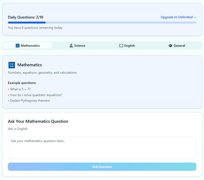This app is built to make learning feel natural, supportive, and personalized for every student from Grade 1 to Grade 10. Instead of forcing one style of explanation on every learner, the app adjusts the tone and depth of understanding to match each student’s stage of growth. Younger students receive simple, clear, age-appropriate explanations that make learning less intimidating, while older students receive respectful, sincere, and well-structured guidance that helps them build confidence and clarity in more advanced topics.