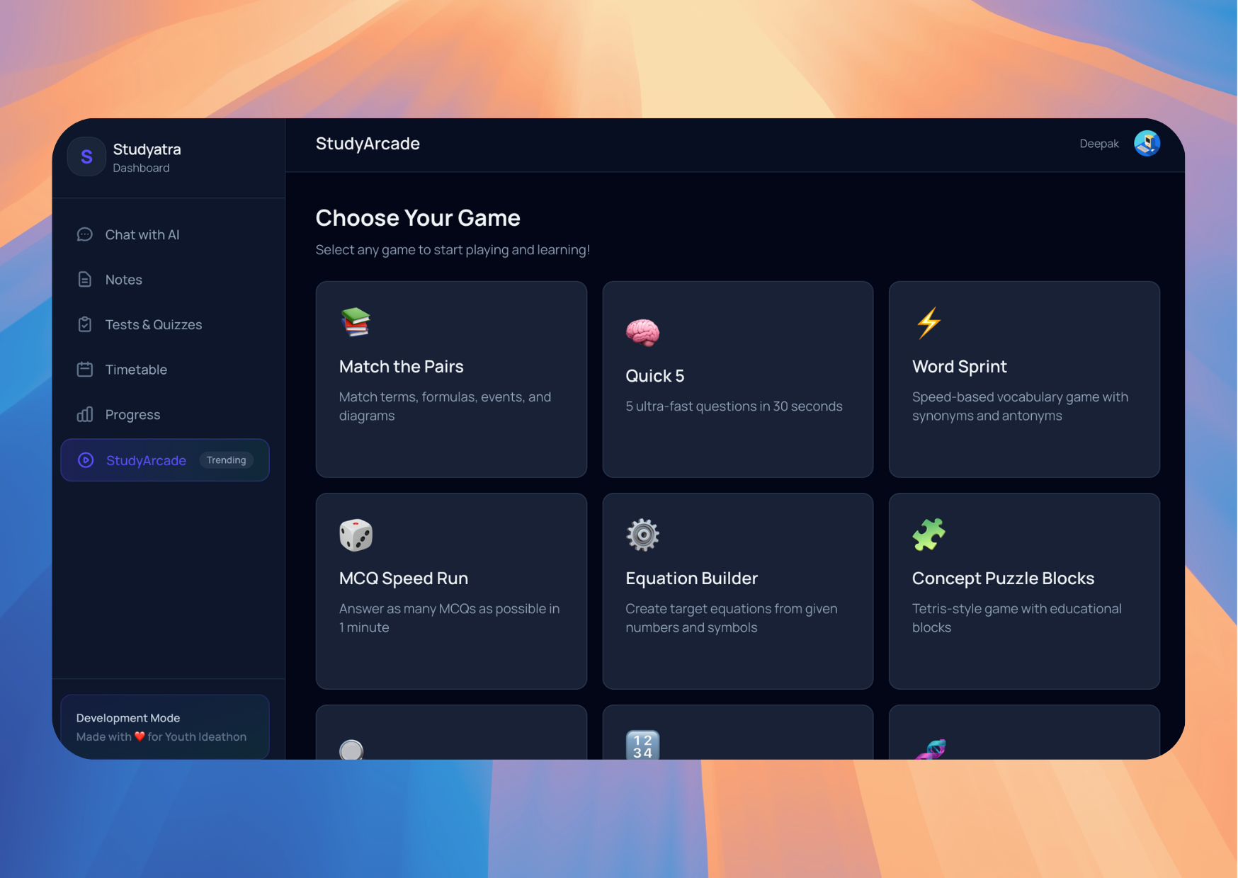 Studyatra is a fun, interactive, and intelligent study website designed to help student learn smarter and enjoy studying every day. For just ₹300, your child gets a full Access Key that unlocks Studyatra’s AI helper, study games, personalized plans, and more — all built to make learning easier, faster, and more enjoyable.
