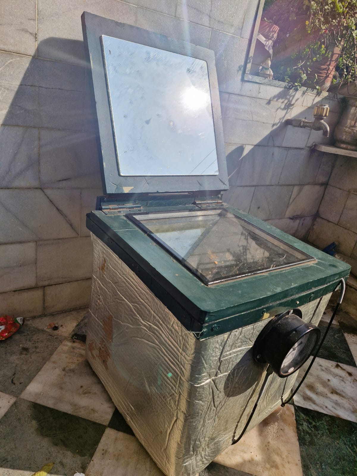 Sunकल्प Composter is a rooftop Solar-powered insulated tank with Mirror and Nitrogen-filled glass lid that converts daily kitchen waste into Organic Compost quickly, reducing landfills and methane emissions while providing eco-friendly fertilizer, creating jobs and fostering community awareness for zero-waste living.