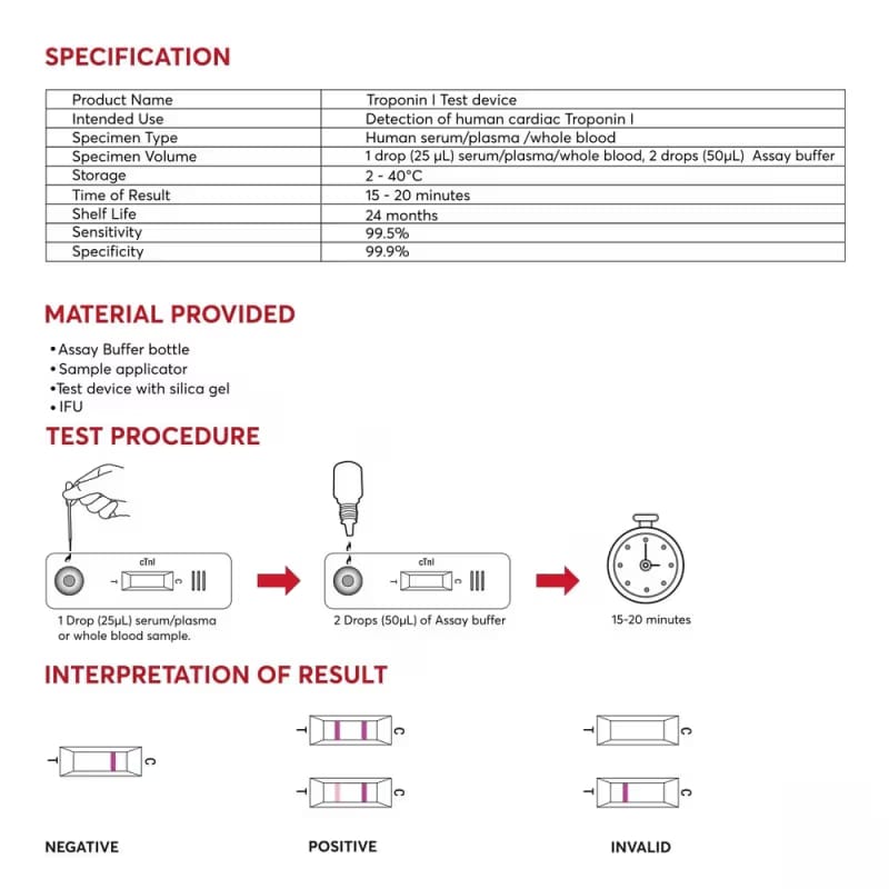 | Specimen Volume | 1 drop (25µL) serum/plasma/whole blood, 2 drops (50µL) Assay buffer |